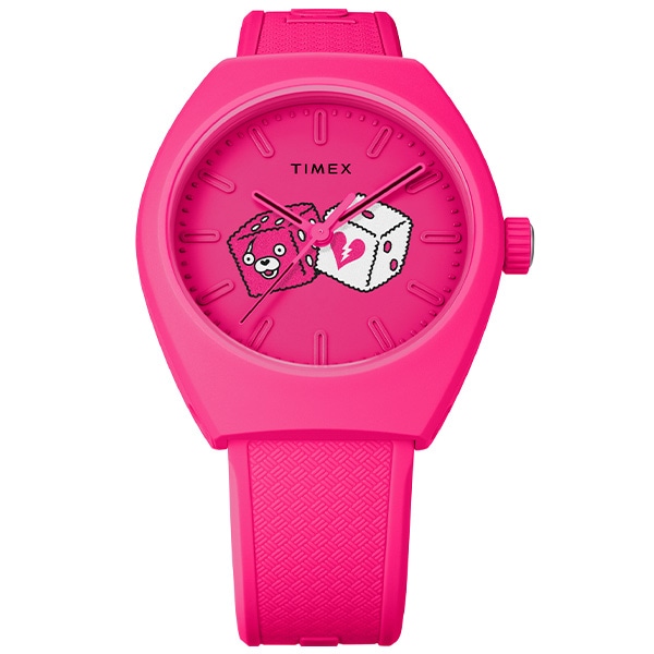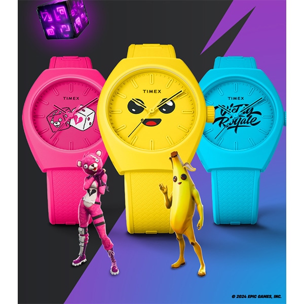世界で約5億人がプレイする<フォートナイト>。このタイメックスとのコラボレーションモデルでは、地球に優しいセラミックとヒマシ油との特別な配合によるエコセラミックをケース素材に採用。