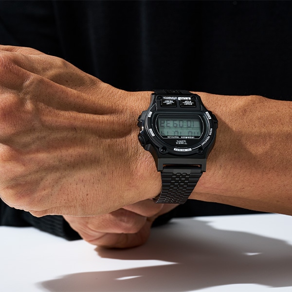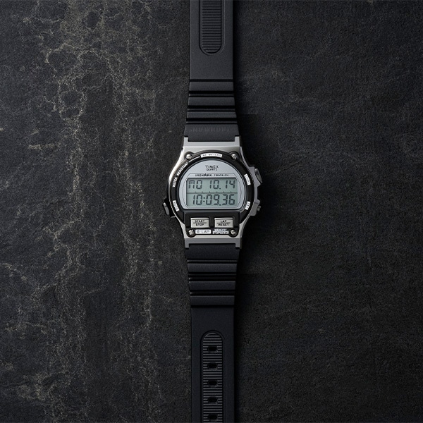 IRONMAN® 8-LAP METAL 【ONLY IN JAPAN/日本限定モデル】名作多しといえども、タイメックスのみならず時計史においてもエポックのひとつと呼ばれるのが、この<アイアンマン® 8ラップ>。それまで真っ黒が主流だったデジタルウォッチのステレオタイプを打ち破り、さらにはフロントボタンを設けて8ラップのメモリー機能を搭載しながら100m防水を実現。