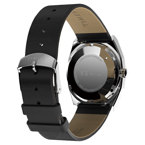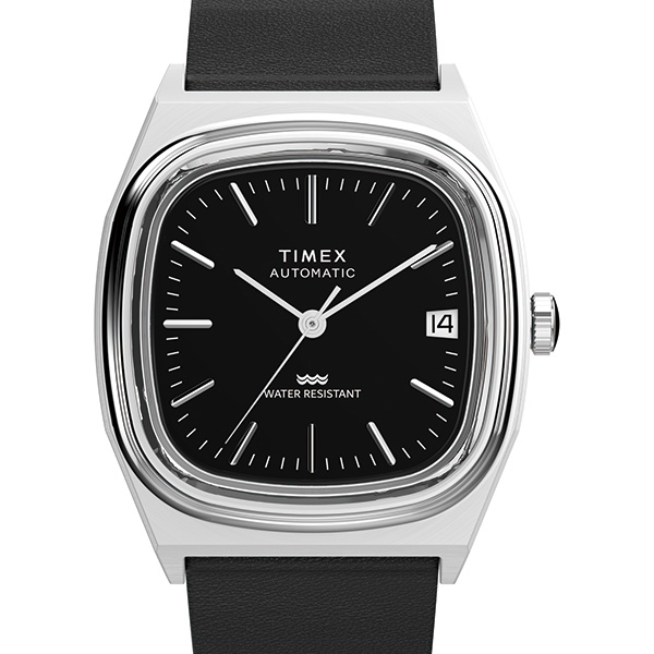 昭和時代の洋画や当時のウォールストリートの金融マンがしていそうな、ブラウン管TVをかたどったシェイプが特徴。シンプルに見えて実は凝った作りのケースは、いま世界的にトレンドとなりつつある小径の34mm幅。奇しくも80年代バブル期のファッションやアイテムも再び注目を集めるいま、こうしたアーカイブが元ネタのモデルを現代のムーブメント(日本製)と外装で楽しめるのは嬉しいポイントです。