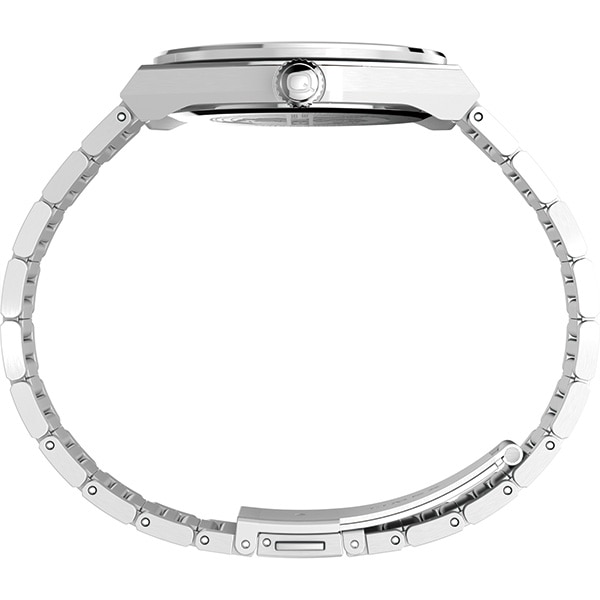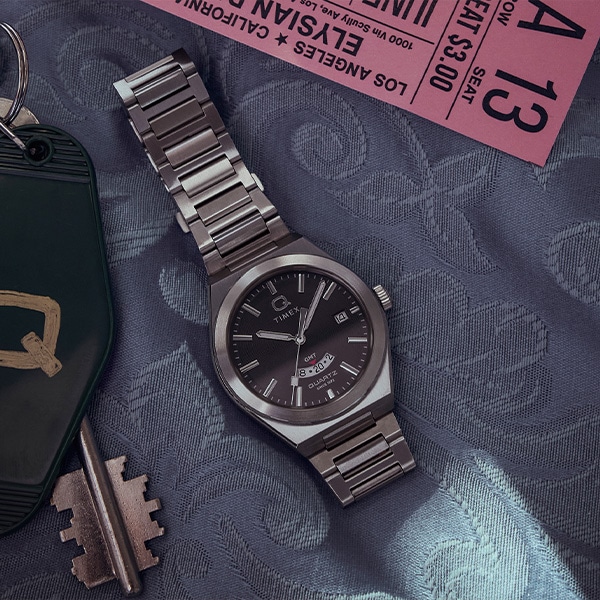 ビンテージの洗練を加えた新たなQ Timexモデルとして登場。デュアルタイム機能を搭載した滑らかなデザインにGMT機能と、Timexならではのスタイルを融合させました。スタイリッシュなケースデザインに、6時位置にある窓からディスク表示のGMTタイム機能を備え、ワールドタイムとして機能します。ブラッシュ&ポリッシュの2タイプの仕上げを組み合わせたケースが光と反射のダイナミックなコントラストを生み出し、ちょっとレトロでありながら今っぽさのあるデザインを取り入れています。