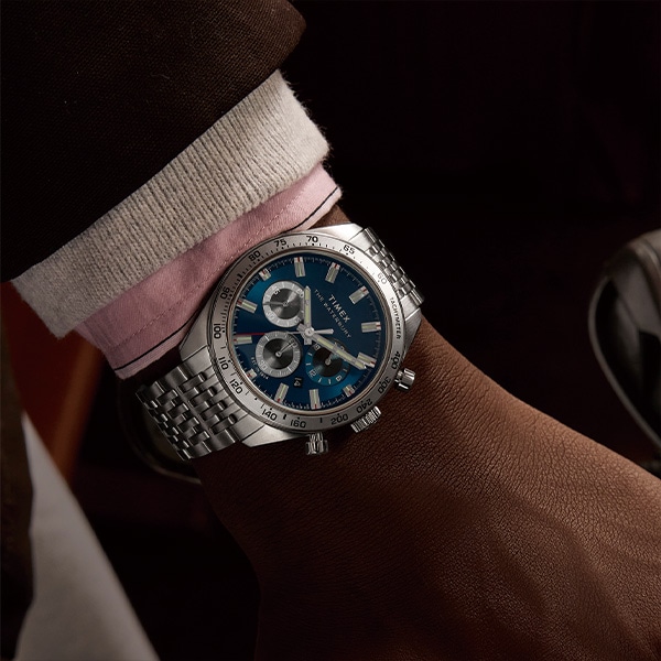 特にアメリカ本国で人気の高い<ウォーターベリー トラディショナル>のクロノグラフ。人気の秘密は大きすぎず小さすぎない41mmサイズと、この価格帯としては100m防水も備えケース仕上げなど高いクオリティであることがあげられます。派手さはなくとも日々使う上でのデザイン性と満足度が高い、それこそがタイメックスの真骨頂です。