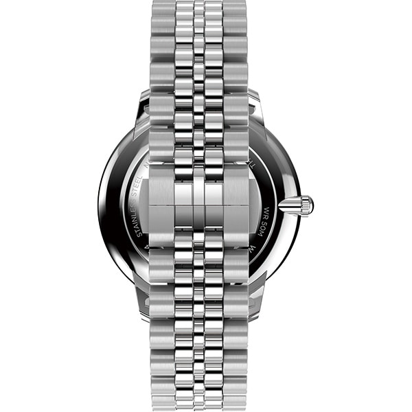 「ドルを有名にした」懐中時計<ヤンキー>に端を発する、正統派なローマンダイアルのデザインに創業当初の社名<ウォーターベリークロックカンパニー>のモノグラムをスモールセコンドのサブダイアルに配したニューモデル。スリムなケースシェイプにクォーツのスモセコがスタイリッシュです。