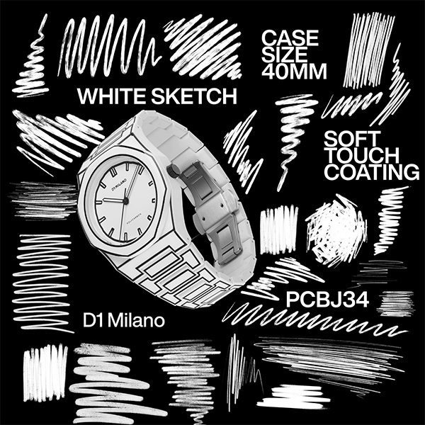 時計のベースカラーに対する線のコントラストを際立たせ 近くでよく見ると、時計全体が手描きのデザインのように見えるデザインとなっています。