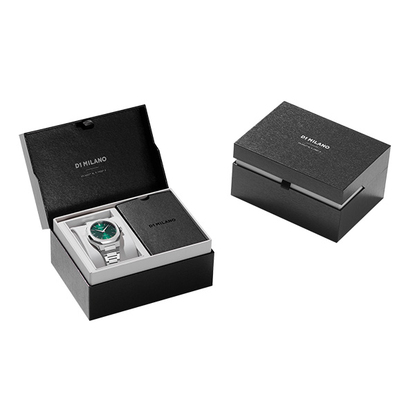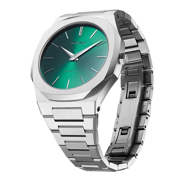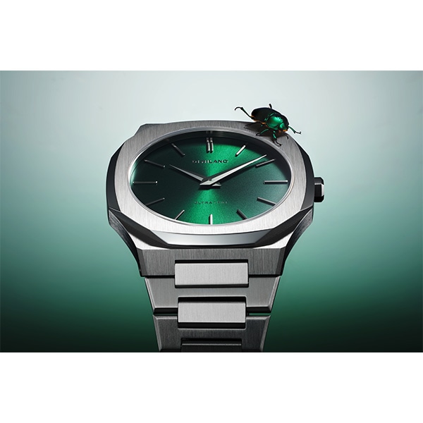 錆びにくく耐久性のあるサージカルステンレススチールを使用しガラスはサファイアガラスと高級時計に採用されている素材を使用しています。人気のグリーン文字盤です。