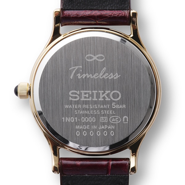 SEIKOとTiCTACのコラボレーションモデルが登場。上質なクロコダイルレザーを使用した4色展開のレディースウォッチです。りゅうずの黒い石がアクセントとなっており、グリーンとネイビーのみアプライドインデックスを使用した、ヴィンテージウォッチのような雰囲気に満ちたデザインが特徴。女性の手元に馴染む小ぶりな径23.5mmのケースサイズで、シンプルで視認性の高いダイヤルです。
