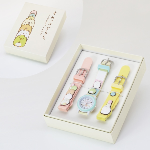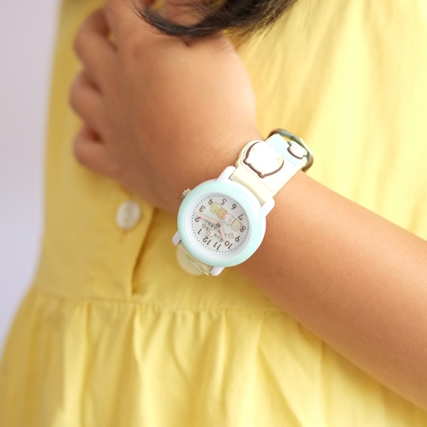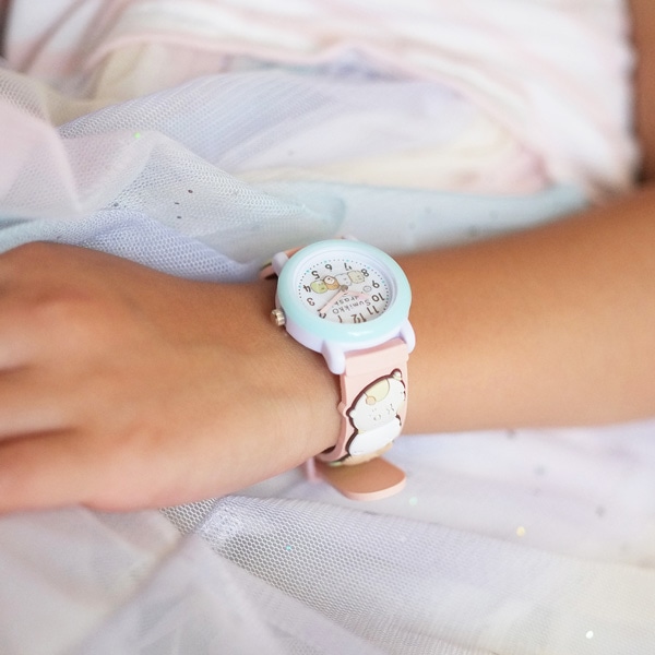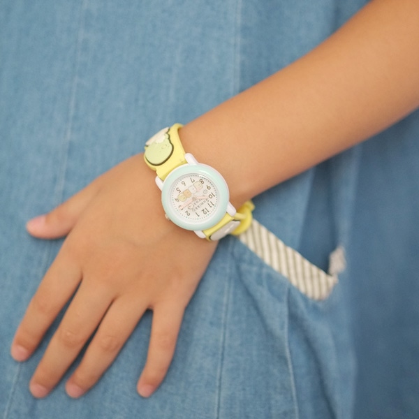 子どもに大人気の「すみっコぐらし」のキッズサイズ腕時計。ラバー立体ベルトのため、可愛いキャラクター達が3Dとなっています。ベルトはピンク・水色・黄色の3色の中からお好きな色を組み合わせることができます。