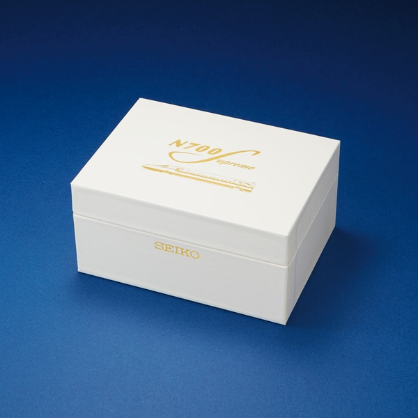 2020年、最高を意味する「Supreme」のイニシャルSを冠して、颯爽とデビューを飾った東海道・山陽新幹線N700Sのぞみ。劇的な進化を遂げたその新世代の新幹線の運行開始1周年を記念して、セイコーよりハイスペックな腕時計が登場しました。美しく輝く車体のホワイトを基調に、ブルーを差し色に効かせたクールなデザインは、未来へ向かって疾走するN700Sのぞみをイメージしています。強靭なステンレススチール製のボディには、高性能なクロノグラフ機構が搭載されました。特製ボックスに収めてお届けします。