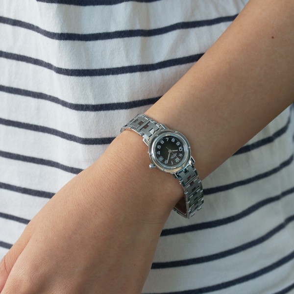 【※こちらの商品は一点ものの中古商品です】エルメスの人気モデル「クリッパー」。 船の窓の形をルーツとしたビス付きの丸型ケースと 「H」のブレスが特徴です。 秒針・日付表示を備え実用性が高く、エルメスの中でも人気の高いモデルです。