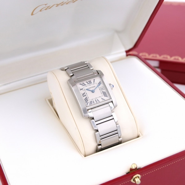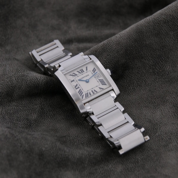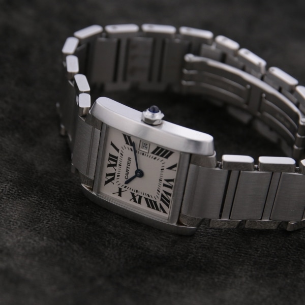 【※こちらの商品は一点ものの中古商品です】1996年に発売されたカルティエの「タンクフランセーズ」。ブレスと一体型のデザインが特徴。