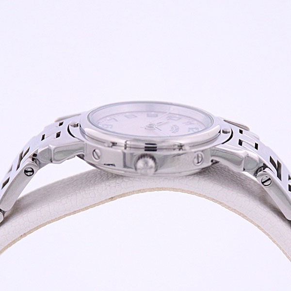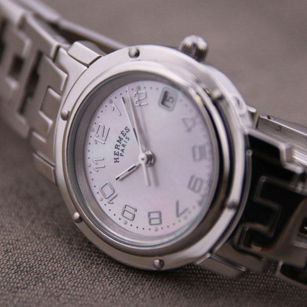 【この商品は1点ものの中古品です】やわらかな輝きを放つ、エルメス「クリッパー」のヴィンテージウォッチ。こちらは、ほのかにピンクがかったシェル文字盤が魅力的な一本です。光の当たり方で表情を変えるシェルが、手元に優しい彩りを与え、フェミニンな雰囲気を演出します。エルメスならではの上品なデザインは、大切な人へのギフトにもおすすめです。