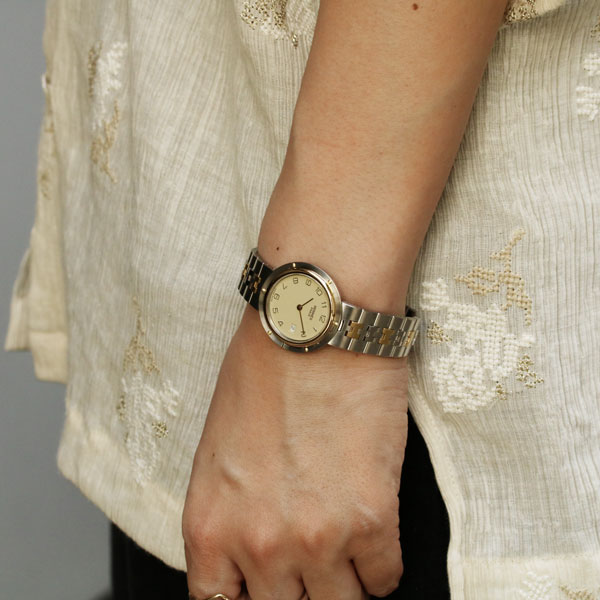 【※こちらの商品は一点ものの中古商品です】ケースとブレスレットが一体となったような優美なフォルムが特徴の“オリンピア”。まるでジュエリーのように手元を彩る、1990年代のエルメスを代表するレディスウォッチです。