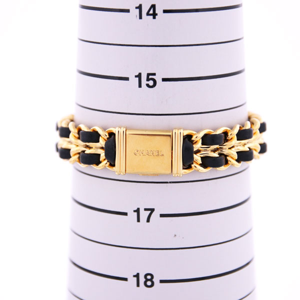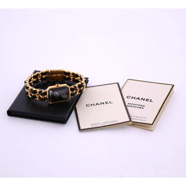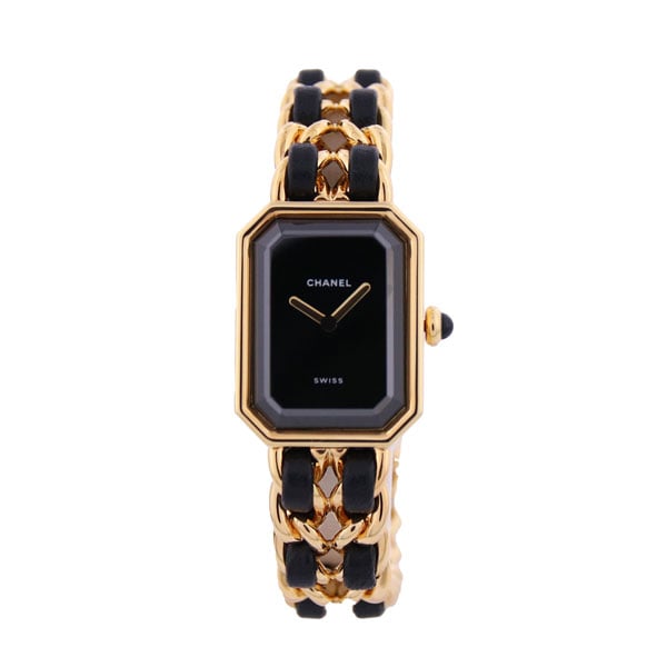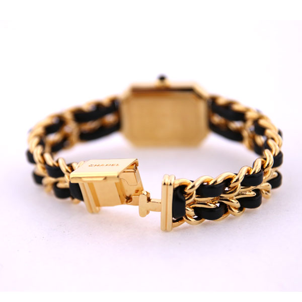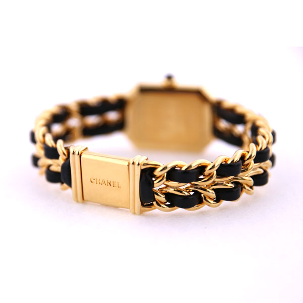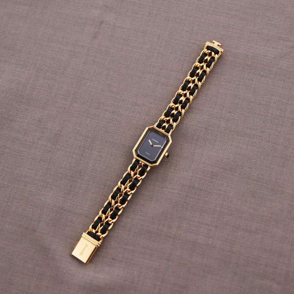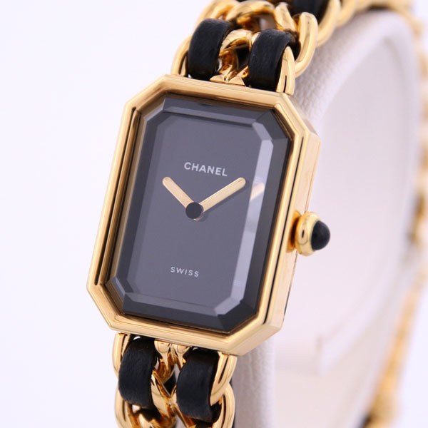 【※こちらの商品は一点ものの中古商品です】シャネルから最初に生み出された腕時計のシリーズ「プルミエール」。 パリのヴァンドーム広場からインスパイアされ、その構造を象徴する八角形のケースが特徴です。 インデックスを省いたシンプルなブラックダイアルに組み合わされた風防のカットガラスが美しく、 チェーンとレザーを編み込んだようなブレスが華やかさとエレガントさを湛えたデザイン。