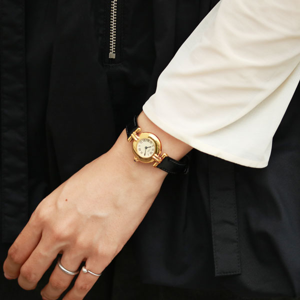【※こちらの商品は一点ものの中古商品です】カルティエの中でも落ち着いた印象のモデル。控えめな輝きが、手元を品よく引き立ててくれます。丸いフォルムと立体的なラグが特徴のデザインで、文字盤はすっきりと見やすく、シーンを選ばず使えるのも魅力です。カルティエらしい上質さはそのままに、普段使いにもぴったりなデザインで大人のカジュアルスタイルにもよく馴染みます。