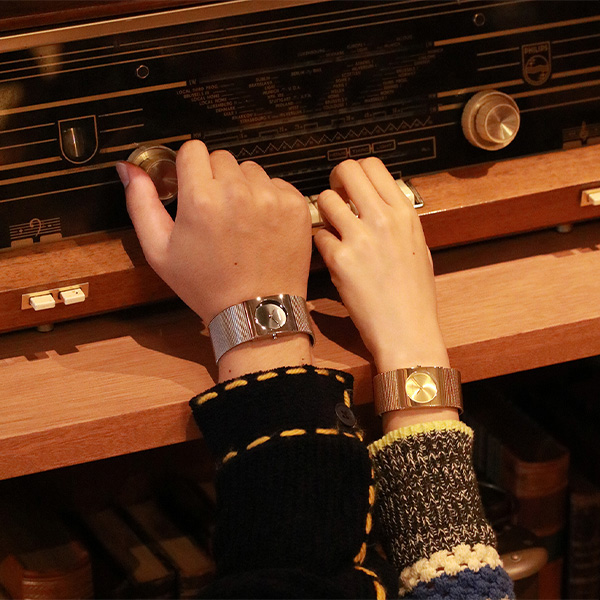 バングルのようなデザインで、クールな印象のカルバンクラインのペアウォッチ。サイズ調整もご自宅でできるタイプ(マイナスドライバーなどの工具が必要です)なので、「きょうはわたしがそっちの色着けたいな」と、シェアして楽しむのもいいですね!