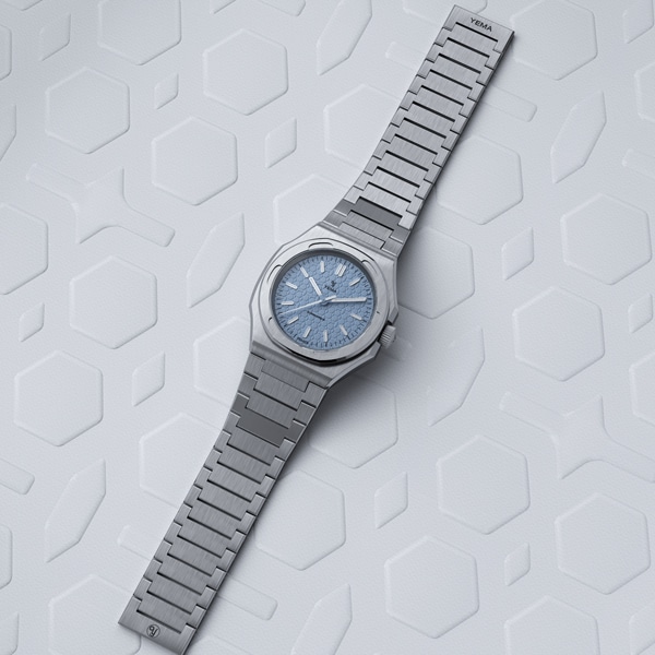 【Wristmaster Traveller】ブレスレット一体型を装備したイエマのアイコンモデル、リストマスタートラベラーがハニカムダイアルに洗練されたスティール製アプライドマーカーと針の装いも新たにドレッシーなコレクションとして再登場。快適な着け心地とエレガントな外観で日常使いのできるスポーツウオッチです。