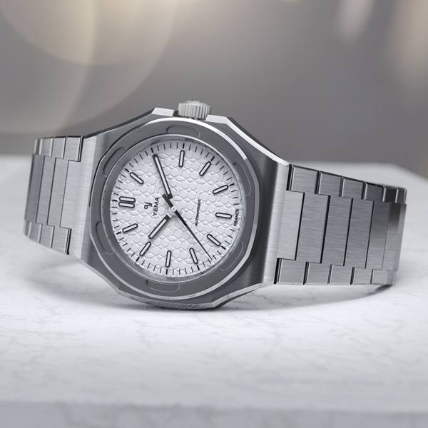 【Wristmaster Traveller】ブレスレット一体型を装備したイエマのアイコンモデル、リストマスタートラベラーがハニカムダイアルに洗練されたスティール製アプライドマーカーと針の装いも新たにドレッシーなコレクションとして再登場。快適な着け心地とエレガントな外観で日常使いのできるスポーツウオッチです。