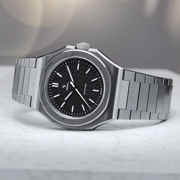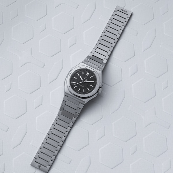【Wristmaster Traveller】ブレスレット一体型を装備したイエマのアイコンモデル、リストマスタートラベラーがハニカムダイアルに洗練されたスティール製アプライドマーカーと針の装いも新たにドレッシーなコレクションとして再登場。快適な着け心地とエレガントな外観で日常使いのできるスポーツウオッチです。