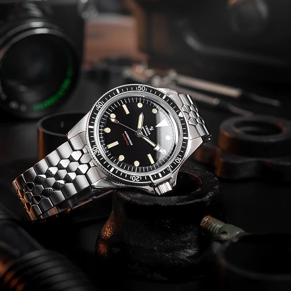 新しいダブルドーム型サファイア・クリスタルは視認性がより改良され、また水中での完全な読みやすさを確保しながら、耐擦傷性の堅牢さとヴィンテージ感を醸し出している外観を実現。