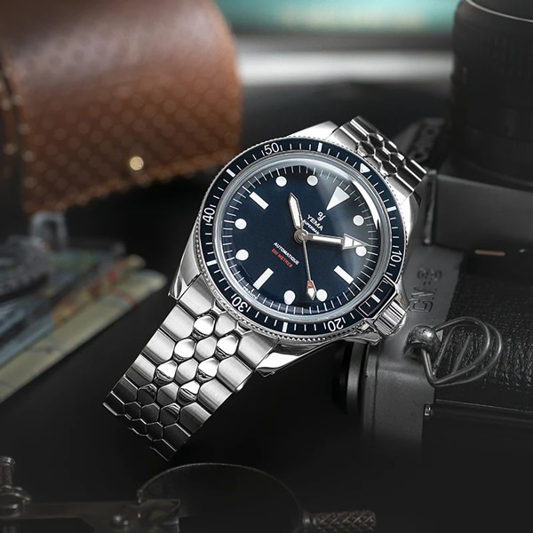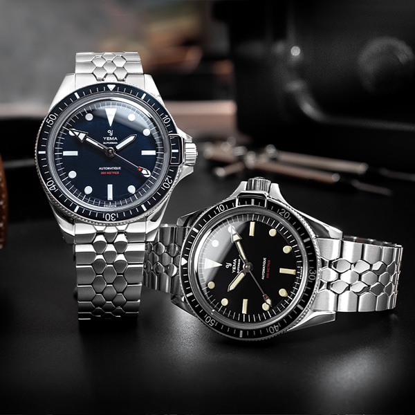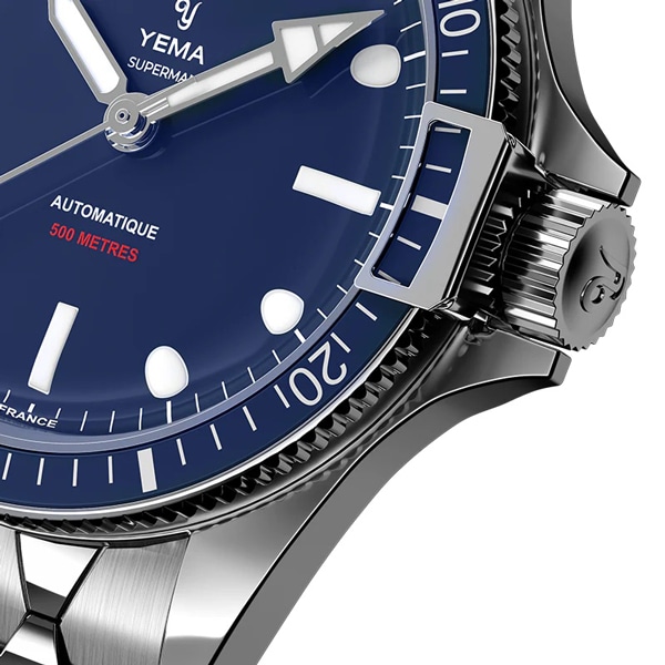 自社製キャリバー YEMA2000を搭載したスーパーマン500は、その象徴的なデザインを維持しながら、技術的な改良と近代化された構造の恩恵を受けています。ベゼルの12時位置にある発光マーカーと矢印型の発光分針は深海における劣悪な視認環境においてもダイバーに正確な潜水時間を提供いたします。
