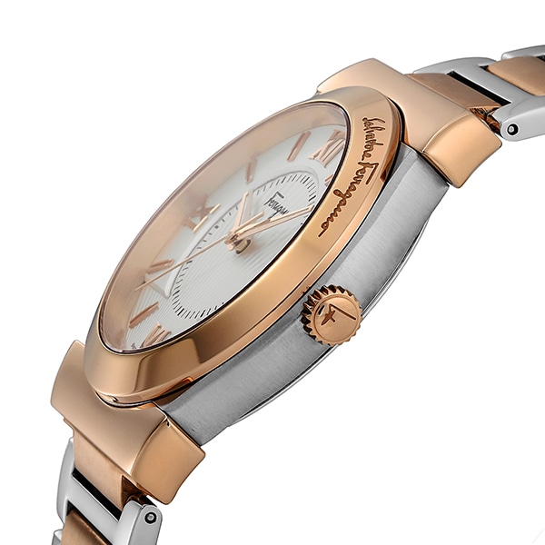 【ご注文後お取り寄せ商品】ゴールドとシルバーのコンビカラーが特徴のメンズモデル。ローマ数字とバーを併用したインデックスが、モダンでスタイリッシュなデザインにまとめ上げています。バックの留め具などに用いられる「ガンチーニ」デザインを模したベゼルのブランドロゴに個性が光る1本。