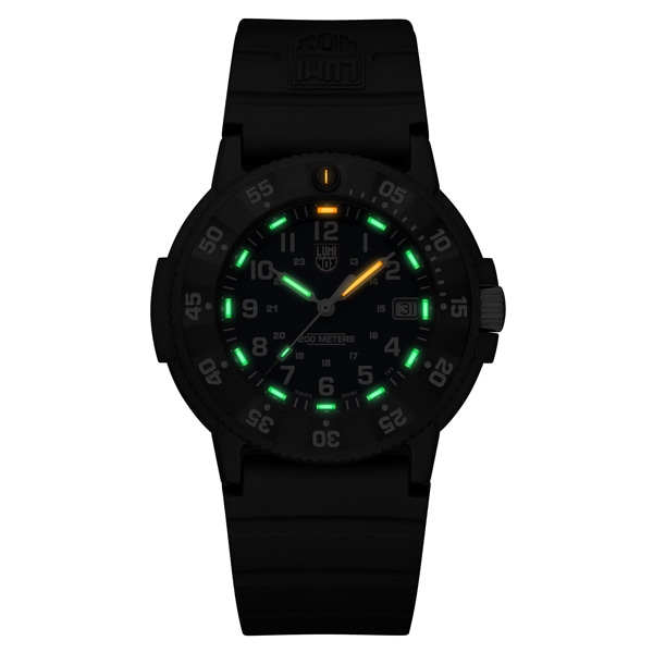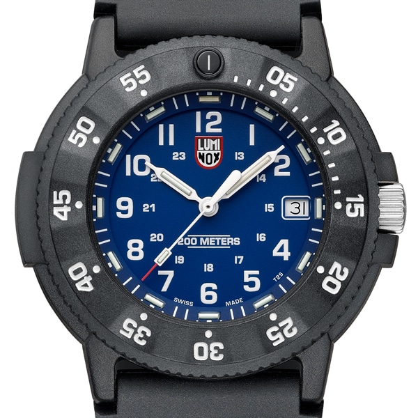 従来のスペックを維持しつつ、フォントや裏蓋など仕様を変更。Ref.3003.EVOは、海兵隊やFBIなどの法執行機関の指定カラーであるブルー文字盤を継承している。