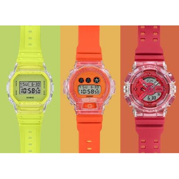 1983年の発売以来、飽くなき強さを求めて進化を続けるタフネスウオッチG-SHOCKから、日本のカプセルトイをイメージしたポップなカラーを落とし込んだ、LuckyDrop シリーズです。ベースモデルには、定番デジタルのDW-5600、フロントボタンを採用したDW-6900、ビッグケースのGA-110を採用しています。DW-5600GLとGA-110GLのガラス、DW-6900GLの文字板、そして各モデルの遊環には、カプセルトイのプラスチックのカプセルをモチーフにしたデザインを採用し、遊び心のある仕上がりになっております。時計をカラフルに、そしてスタイルのアクセントになるクールなデザインです。