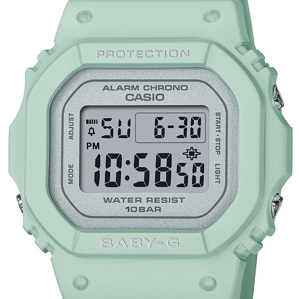 アクティブな女性に向けた耐衝撃・カジュアルウオッチBABY-Gから、春の季節にぴったりのフラワーカラーに彩られたモデルです。ベースモデルには、コンパクトなサイズが人気のBGD-565をセレクト。カラーは3色。それぞれ、「ライラック」「セージ」「桜」をイメージしてご用意しました。ライラックとセージをモチーフにした2モデルは、フェイスまで同系色のワントーンスタイルにしました。桜をイメージしたバイカラーモデルは、ホワイトとペールピンクで普段使いしやすい落ち着いた印象に。ダイアルには光沢感のあるパール塗装を施し、華やかさをプラスしました。春気分をより一層盛り上げてくれるウオッチです。