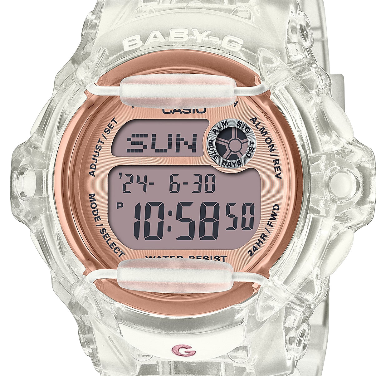 アクティブな女性のためのカジュアルウオッチBABY-Gから、コンパクトで丸いフォルムのボディに耐衝撃性を実現するフロントプロテクターを搭載したBG-169シリーズです。20気圧防水やワールドタイム、ストップウオッチなどの便利な機能も充実。オンでもオフでも着けるシーンを選ばない、BABY-Gです。