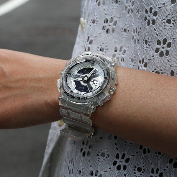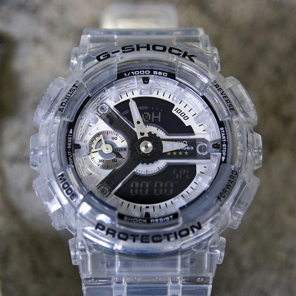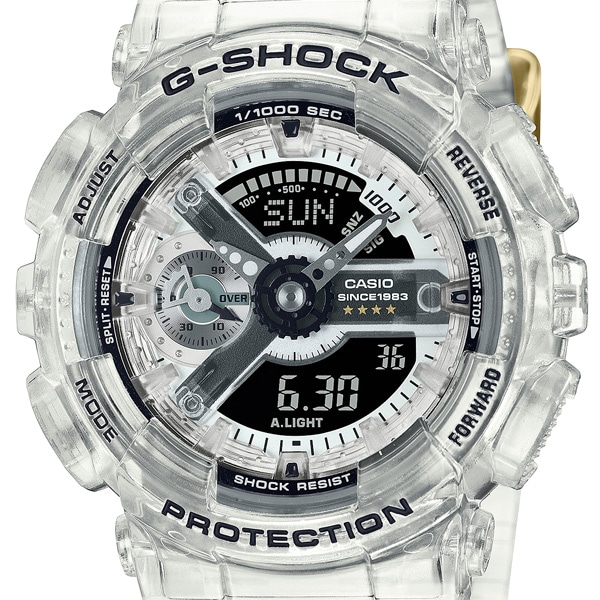1983年の誕生以来タフネスを追求し、2023年に40周年を迎えるG-SHOCKの限定モデル「G-SHOCK 40thAnniversary Clear Remix(クリアリミックス)」シリーズです。G-SHOCKの人気モデルの再構築をイメージし、クリアパーツを使用することで、これまでにない透明感を表現しました。ベースデザインには、定番デジタルのDWE-5600、初代のDW-5000、フロントボタンのDW-6900、ペアでも着用できる、GA-110とGMA-S110、GA-2100とGMAS2100を採用しています。各モデルには、スケルトン素材のバンド、ケース、ダイアル、LCD、ボタンを採用し、デジタルモデルの回路基板には、Gマークなどを基板パターンにし、40周年を記念する特別な仕様になっています。更にDWE-5640RXは樹脂とメタルの異素材を融合したバンドデザインで、G-SHOCKの素材進化をシンボリックに表現しています。スケルトンケースには、初採用となる透明グラスファイバーダイアミドを使用しています。また、ケースバックにはG-SHOCK25th、30th、35thのロゴもデザインを手がけたエリック・ヘイズの手による40thロゴを、遊環や中留などには“40”を表現するスターマークを刻印するなど、限定モデルに相応しい仕様になっています。※・スケルトンケース(DW-6940RX、GA-114RX、GMA-S114RX)・スケルトンダイアル(DW-6940RX、GA-114RX、GA-2140RX、GMA-S114RX、GMA-S2140RX)・スケルトンLCD(DWE-5640RX、DW-5040RX、DW-6940RX)・スケルトンボタン(GA-114RX、GMA-S114RX)