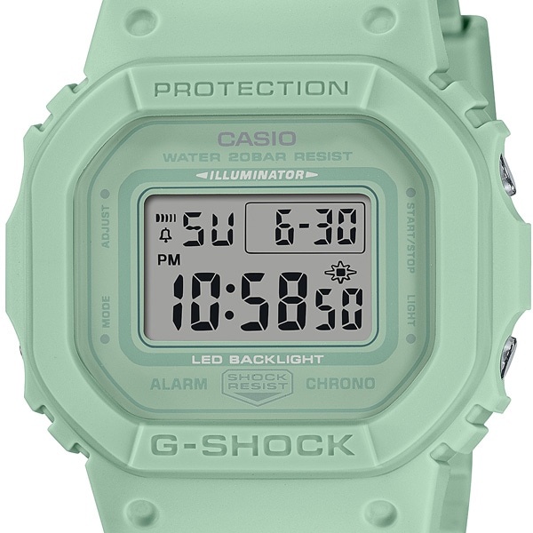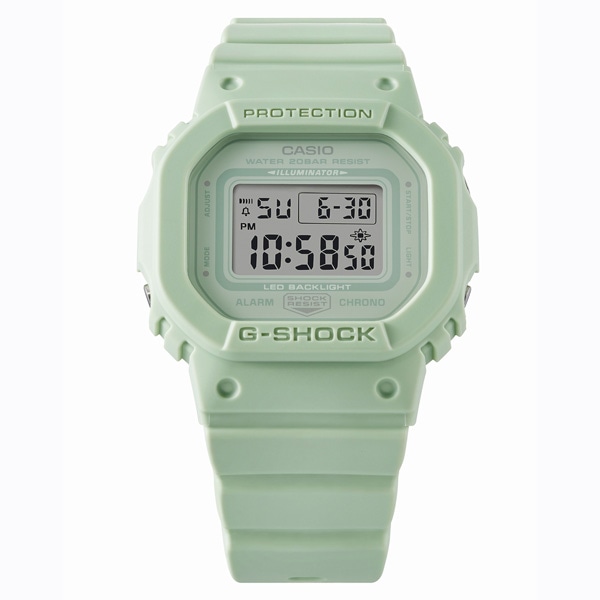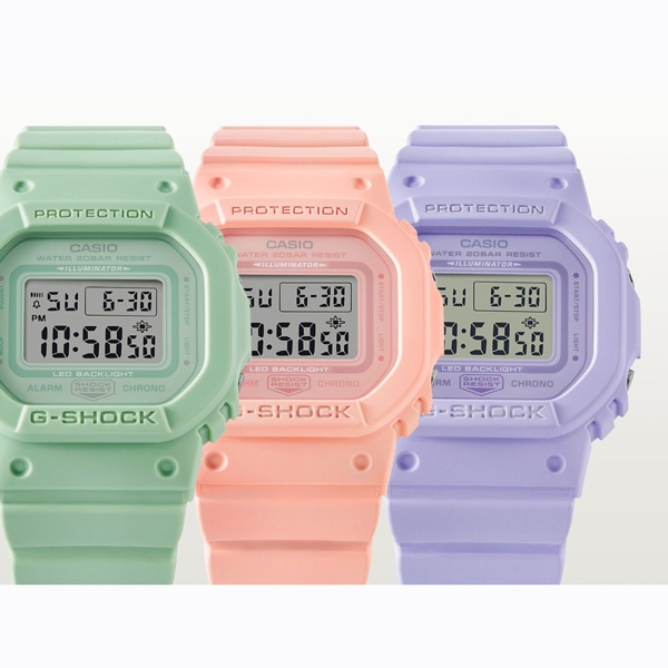 G-SHOCKのアイコンモデルであるDW-5600を小型化・薄型化したモデルです。ワントーンのカラーで全体を仕上げ、ファッショントレンドを押さえたカジュアルでスタイリングしやすいモデルです。