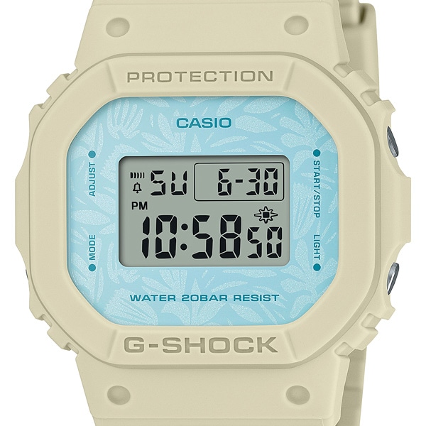 ベースモデルには定番のスクエアモデルを小型化、薄型化したGMD-S5600を採用。ハーブの柄を文字板にプリントしました。ベゼル、バンドには原料にトウモロコシなどの再生可能な有機資源を使うことで、環境負荷低減に貢献することが期待されている「バイオマスプラスチック」を採用しています。自然からインスパイアされた優しい色合いとデザイン表現が、スローライフを好む人にピッタリのウォッチです。