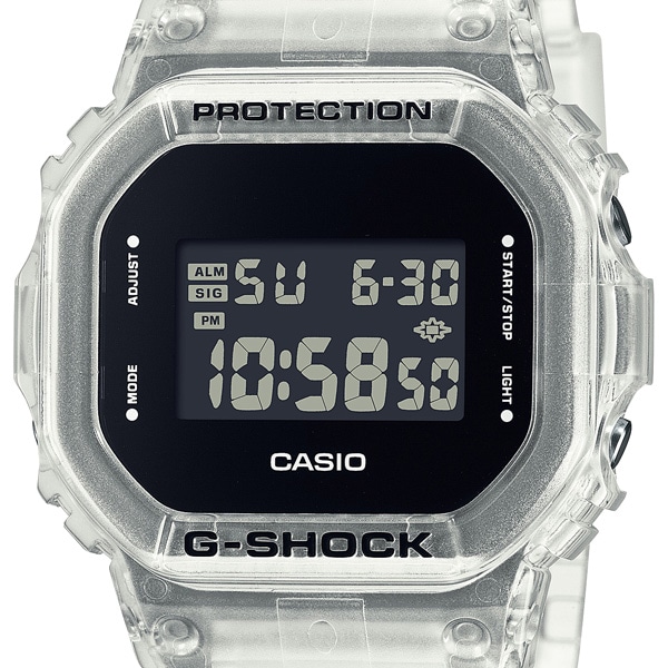 タフネスを追求し進化を続けるG-SHOCKから、透過する樹脂パーツで構成したスケルトンシリーズです。
