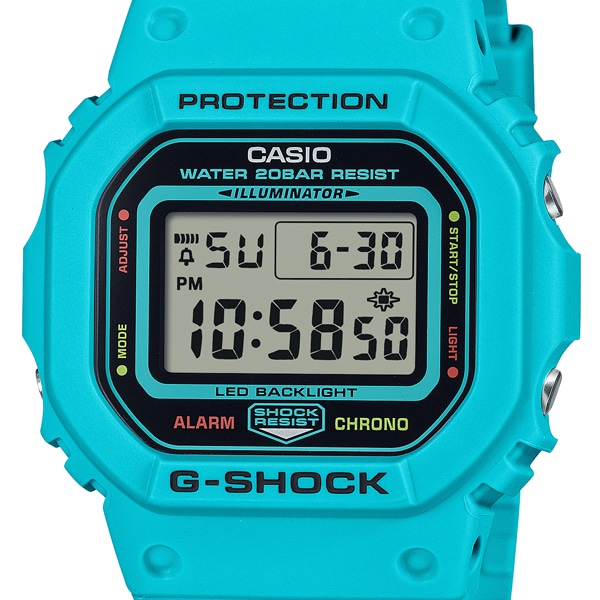 1983年の発売以来、飽くなき強さを求めて進化を続けるタフネスウオッチG-SHOCKから、トップアスリートチーム「TEAM G-SHOCK」、そしてすべてのアスリートをサポートするENERGY PACKです。デザインモチーフはエナジー。ビビッドなブルー、レッド、イエローで、定番の5600ケースを鮮やかに彩りました。LEDバックライト発光時には、電光石火をイメージした稲妻が浮かび上がります。またバンドには環境に配慮したバイオマスプラスチックを使用しています。強さと俊敏さをイメージさせるトップアスリートに相応しいカラーリングで、すべてのアスリートを応援します。