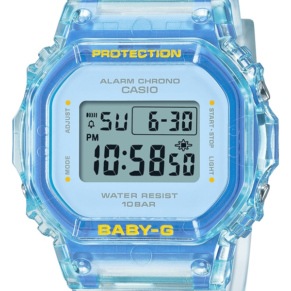 アクティブな女性のためのカジュアルウオッチBABY-Gから、清涼感溢れるシースルーデザインのウオッチです。