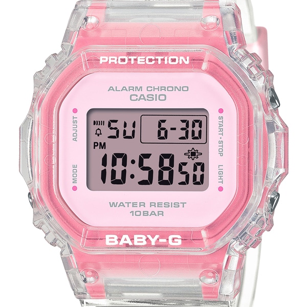 アクティブな女性のためのカジュアルウオッチBABY-Gから、清涼感溢れるシースルーデザインのウオッチです。