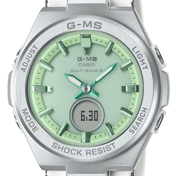 ベースモデルには電波ソーラーモデルのMSG-W200とMSG-W600をセレクト。どちらのモデルも時分針とデジタル窓を組み合わせたデジタル・アナログコンビネーションモデルで、機能面では、世界6局の標準電波に対応し時刻を自動修正するマルチバンド6、ワールドタイム、タフソーラー等、頼れる機能を備えています。アクティブシーンで役立つ機能はそのままに、オンタイムからオフタイムまで活躍するG-MSです。