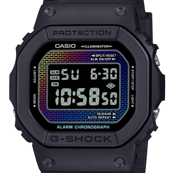 G-SHOCKのアイコニックなデザインであるレンガパターンを光の反射によりさまざまな色合いを見せるレインボーカラーで表現。壁を乗り越えて、常に限界を超えて挑戦していくタフネススピリットを表現しました。