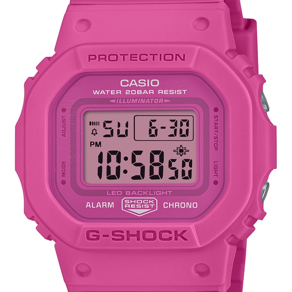 乳がんの早期発見・診断・治療の大切さを呼びかけるピンクリボン活動を支援するG-SHOCKです。ブラックのボディの中に、さりげなくピンクの差し色を入れたDW-5600PKと、オールピンクで仕上げたGMD-S5610PKの2モデル展開です。