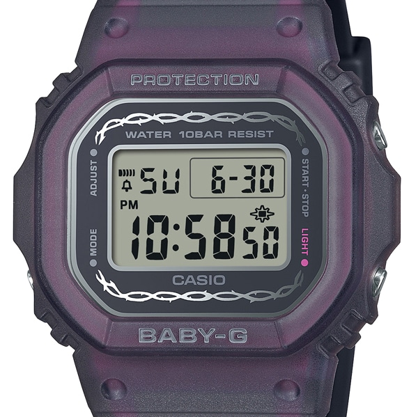 LEDバックライト点灯時、液晶にそれぞれのカラーのバラが浮かび上がり、大切な瞬間に時計に込められた意味を思い出すことができます。裏蓋には茨のモチーフをデザインしタフなコンセプトを表現しました。困難な状況でも力強く咲き続けるバラをコンセプトにした、大切な人に贈るホリデーシーズンのギフトにぴったりのウオッチです。