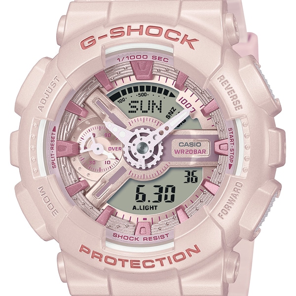 ベゼルとバンドに偏光パール塗装と光沢を抑えたマット仕上げを施し、優しく上品なシルクの質感を表現しました。見る角度で表情を変え、腕元を美しく彩ります。カラーバリエーションはソフトなイメージの3色。コーディネートしやすいホワイトに加え、新色のブルーとピンクをラインアップしました。