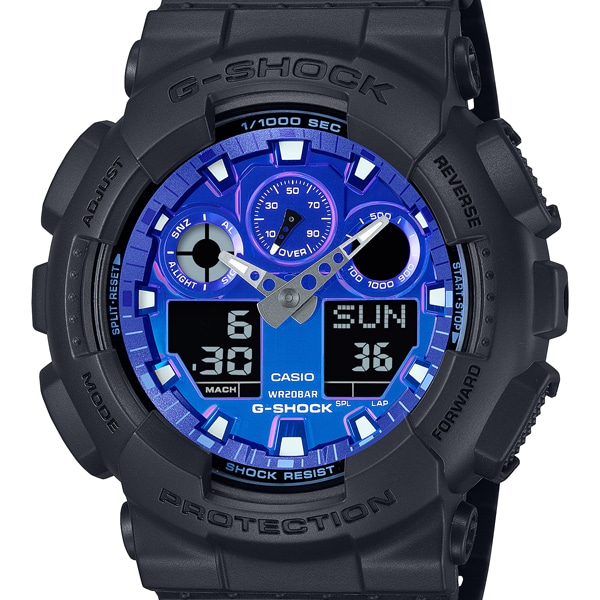 1983年の発売以来、飽くなき強さを求めて進化を続けるタフネスウオッチG-SHOCKから、G-SHOCKのブランドアイデンティティである挑戦をテーマに、胸の内で燃える情熱の炎をイメージした、Flame insideシリーズです。ベースモデルには、オクタゴンケースのGA-2100とビッグケースのGA-100を採用しています。ブラックボディに白煙をイメージしたグレーグラデーション塗装を施し、高い温度の炎をイメージしたクールなブルーのグラデーション蒸着文字板のGA-2100FL-1A/GA-100FL-1Aと、グレーボディに黒煙をイメージしたブラックグラデーション塗装を施し、低い温度の炎をイメージしたエネルギッシュなオレンジのグラデーション蒸着文字板のGA-2100FL-8A/GA-100FL-8Aをラインアップ。鮮やかなグラデーションカラーで情熱の炎を表現しました。蒸着処理を施したダイアルは、クールなブルーとエネルギッシュなオレンジの2色。バンドはスモークをイメージしたブラックとグレーでまとめ、蒸着色を際立たせています。
