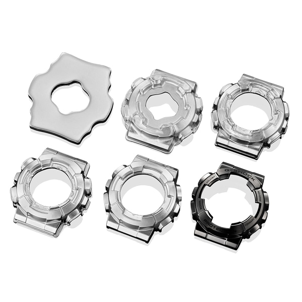 緻密な鍛造工程を経て、切断と研磨だけでなく、特殊な成形による金属製ベゼルを採用し、タフな構造はそのままに無骨で存在感のあるデザインに仕上げました。ケース素材には、高剛性を発揮するカーボン繊維入りファインレジンを使用し、新たにデザインされたメタルバンドで、幅広いストリートシーンにも対応できる仕様になっています。ブラックIP塗装でオールブラックにゴールドのダイアルが輝くGM-110BD-1A9と、シルバーステンレスにガンメタリックのダイアルでシーンを選ばないGM-110D-8Aの2モデルをラインアップ。G-SHOCKビッグケースの存在感と、デザイン、フォルム、サイズ、さらに耐衝撃性能に徹底的にこだわった、GM-110です。