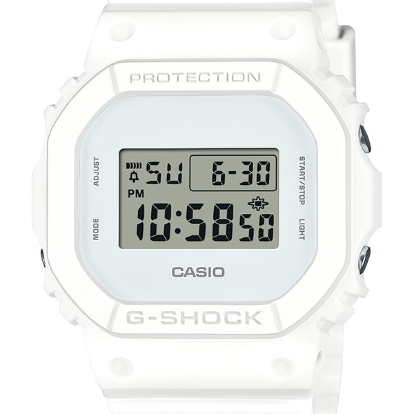 タフネスを追求し進化を続けるG-SHOCKから、細部のパーツまですべてホワイトのワントーンで仕上げたDW-5600WW-7JFのご紹介です。ベースモデルはDW-5600を採用。液晶の色にもこだわり、ケース、ベゼル、バンド、ガラスの各パーツに至るまでホワイトのワントーンで仕上げました。ストリートファッションにも最適なカジュアルでスタイリングのアクセントとして活用しやすいモデルです。