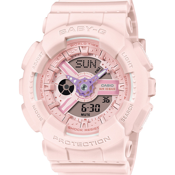 アクティブな女性に向けた耐衝撃・カジュアルウオッチBABY-Gから、柔らかなソフトカラーを纏ったデザインで、日常に彩りを添えるモデルです。