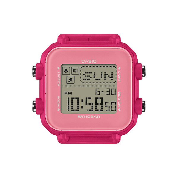 手首に着けるだけでなく専用ホルダーにセンターケースをセットすれば、ユニークなチャームとしても活躍します。時計本体・ホルダー共にマット調のフレッシュなパステルカラーを採用した、キュートなデザインです。シリコーンの時計ホルダーはシールやデコレーションで自分仕様にアレンジも可能です。また、ライトを点灯すると液晶に可愛いハートが浮かび上がり、フェイスを楽しく演出します。