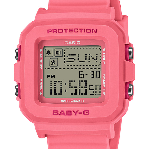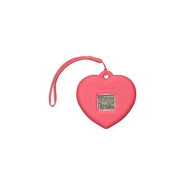 自分の好みに合わせて使い方が楽しめる「BABY-G+PLUS」シリーズから、ハート型の時計ホルダーを採用したポップなモデルです。