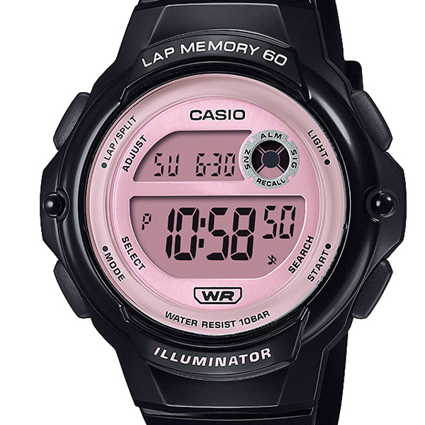 ラップメモリー60本付きのランナー向けモデルです。ランニング中も腕元を邪魔しない、小型のラウンドケースを採用。突然の雨や水濡れも気にせず使える10気圧防水、暗闇でも安心のLEDバックライト、タイマー等ワークアウトに役立つ機能を搭載しています。