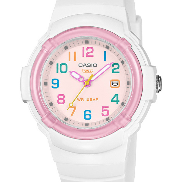 キュートで目をひくデザインに、10気圧防水や日付表示など、デイリーユースに便利な機能を搭載。バンドには、環境に配慮したバイオマスプラスチックを使用しています。機能もデザインも、毎日を楽しく彩るアナログウオッチです。