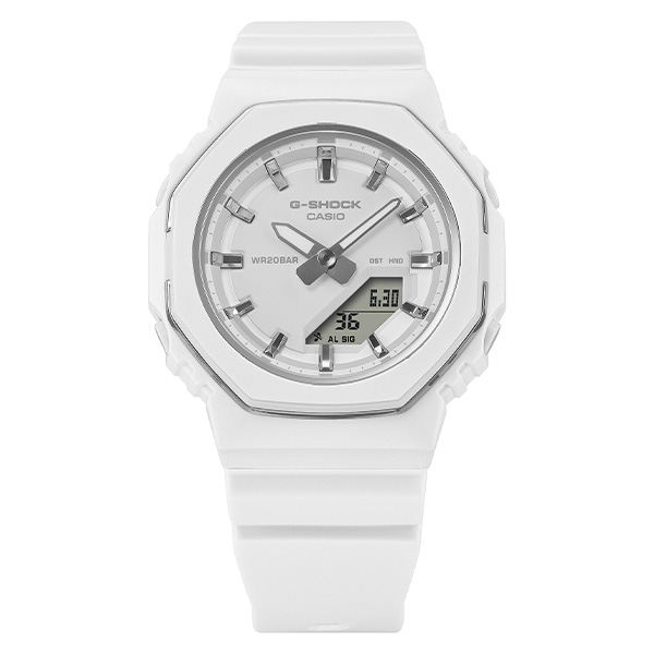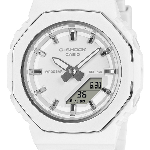 人気のアナログ・デジタルコンビネーションシリーズからベゼルの内側と外側からのぞくメタリックリングが印象的なモデルが仲間入り。GMA-P2100シリーズと同等のサイズ・装着感でありながら、メタリックパーツのさりげない輝きが高級感や洗練さを演出しています。また、ベゼル周りの文字要素を省き、インデックスはGMA-P2100シリーズよりもシャープなデザインに変更することで、より洗練された印象を与えます。カラー展開は、ブラック、ベージュピンク、ホワイトの3色でコーディネートに取り入れやすいカラーを用意しました。ぜひクリーンで大人なストリートスタイルを彩るワンポイントアクセントとしてご活用ください。