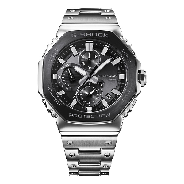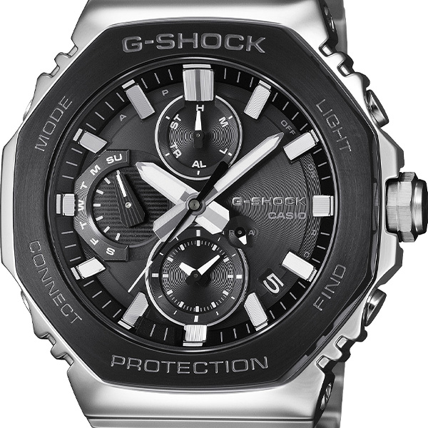 GMW-B5000BTはトップベゼルをミラー仕上げとし、ガラスの一部にシルバー蒸着を施すことで、タフなスタイルの中に精巧な輝きを加えています。GM-B2100BTとGMC-B2100BTは、トップベゼルにヘアライン仕上げを採用し、落ち着いたメタル感を演出。さらに、視認性を高機密情報めるためインデックスにはシルバー蒸着を施し、ダイアルとのコントラストを際立たせています。